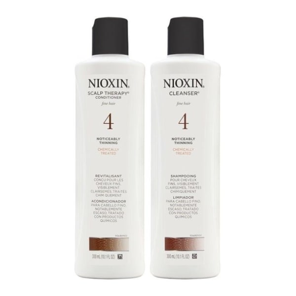 For color treated hair with progressed thinning amplifies hair structure and protects against hair breakage. This unique set of three professional hair products, based on an advanced skin care approach, is specially formulated as a hair thickening treatment, delivering fuller-looking hair and color protection. The Nioxin System 4 regimen reduces hair fall due to breakage, strengthens the hair and delivers a healthy shine to color treated hair, while refreshes the scalp. The Nioxin Cleanser Shampoo removes dirt, excessive oil and other environmental residues from the scalp and hair. Nioxin Scalp Therapy Conditioner is a lightweight conditioner that helps provide hair resilience, hydrates scalp and hair from root to tip.