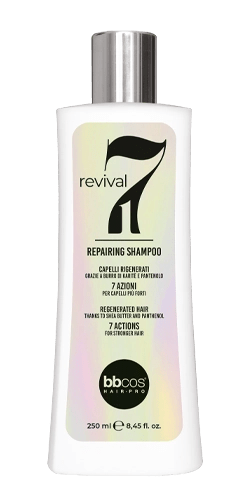 Revival 7in1 is the ideal multifunction repair shampoo for all hair types. A creamy and intoxicating emulsion wraps the hair to gently cleanse and strengthen the damaged areas. Shea Butter and Panthenol, combined synergistically, give life to 7 instant actions for regenerated, protected and extraordinarily bright hair.